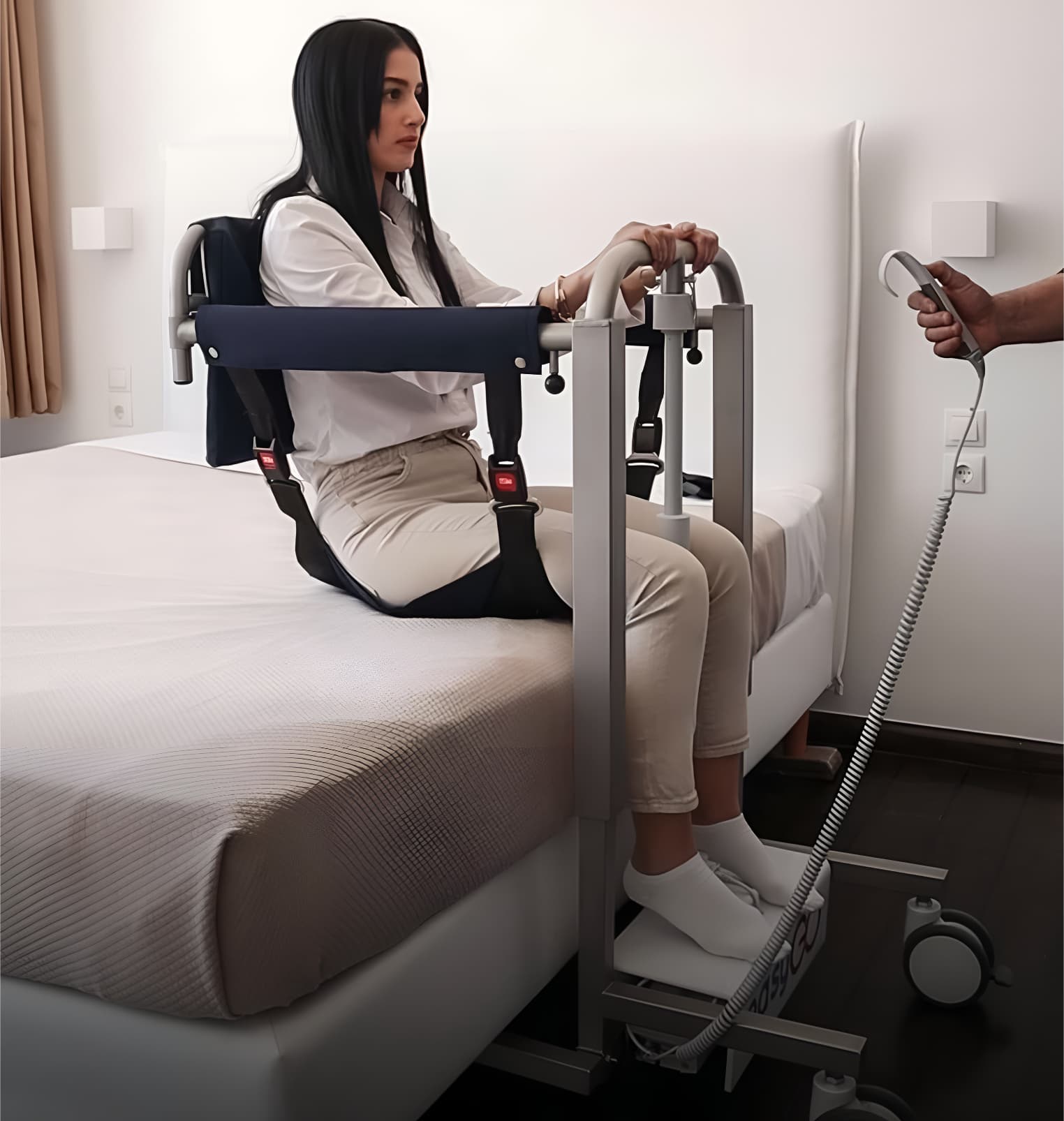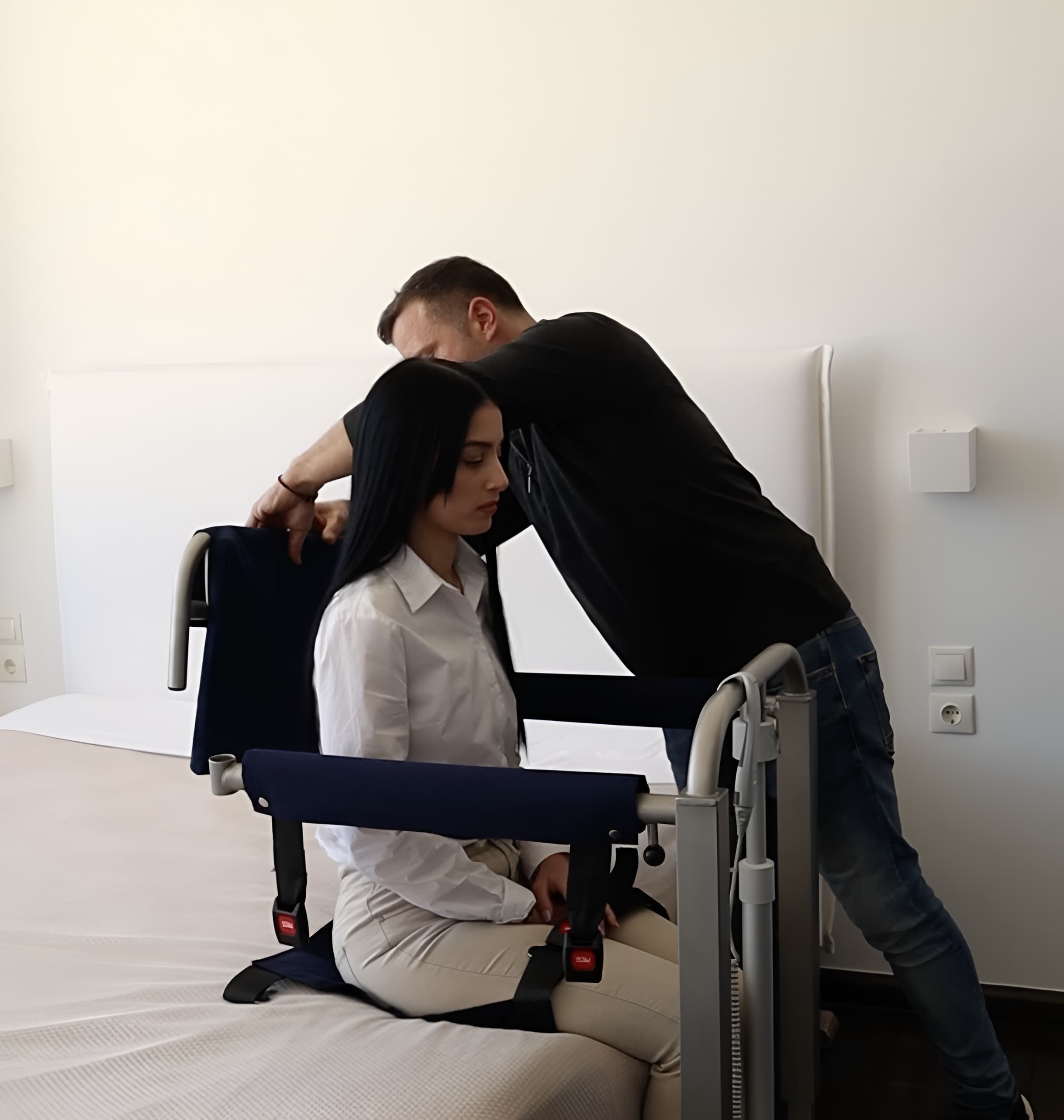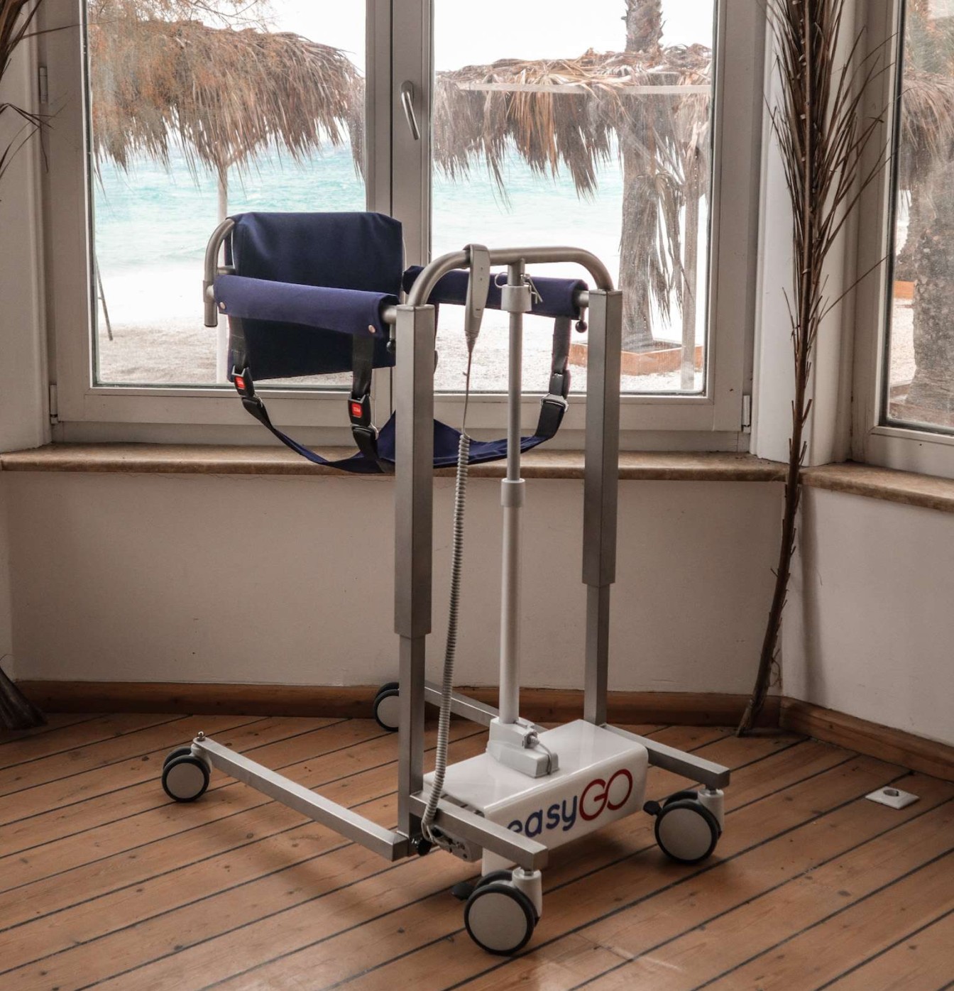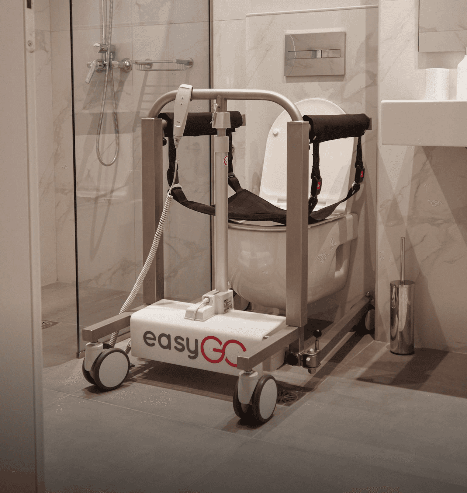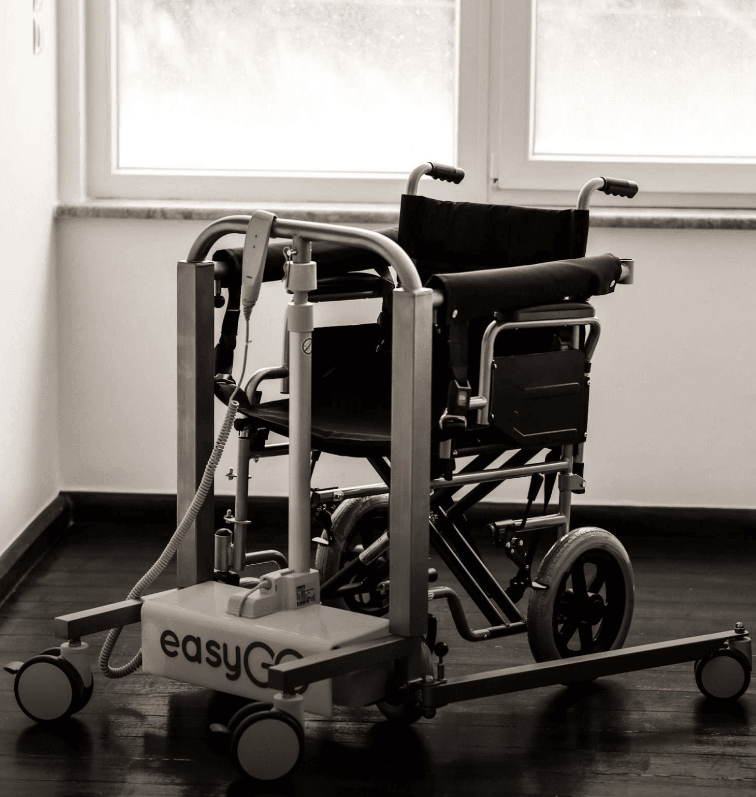 EasyGo è una sedia elettrica progettata per il sollevamento e il trasferimento assistito e sicuro di persone con mobilità ridotta. Non è solo una sedia, è uno strumento che accompagna, protegge e semplifica.